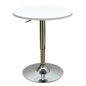 Bàn Mặt Tròn Chân Mạ Crom tăng chỉnh chiều cao BT06M có kiểu sang trọng với chất liệu tấm MDF cao cấp được sản xuất trên dây chuyền công nghệ cao có khả năng chống thấm nước và dễ dàng lau chùi, làm sạch. Bàn có màu trắng trang nhã hay màu đen sang trọng góp phần tạo không gian thông thoáng và làm nổi bật các món ăn đồ uống được bày biện bên trên tạo cảm giác sạch sẽ, ngon miệng cho thực khách.
