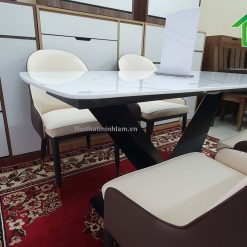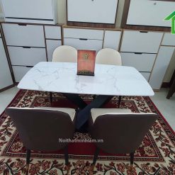 - Mặt bàn ăn với đá cảm thạch nhân tạo có khả năng chống ố, chống bám bẩn, lưu giữ vẻ bóng bẩy và bền bỉ theo thời gian ( khác hoàn toàn với hàng phân khúc kém chất lượng ) . Đây là điểm cộng của bàn ăn N3F, tạo dựng niềm tin trong lòng khách hàng.