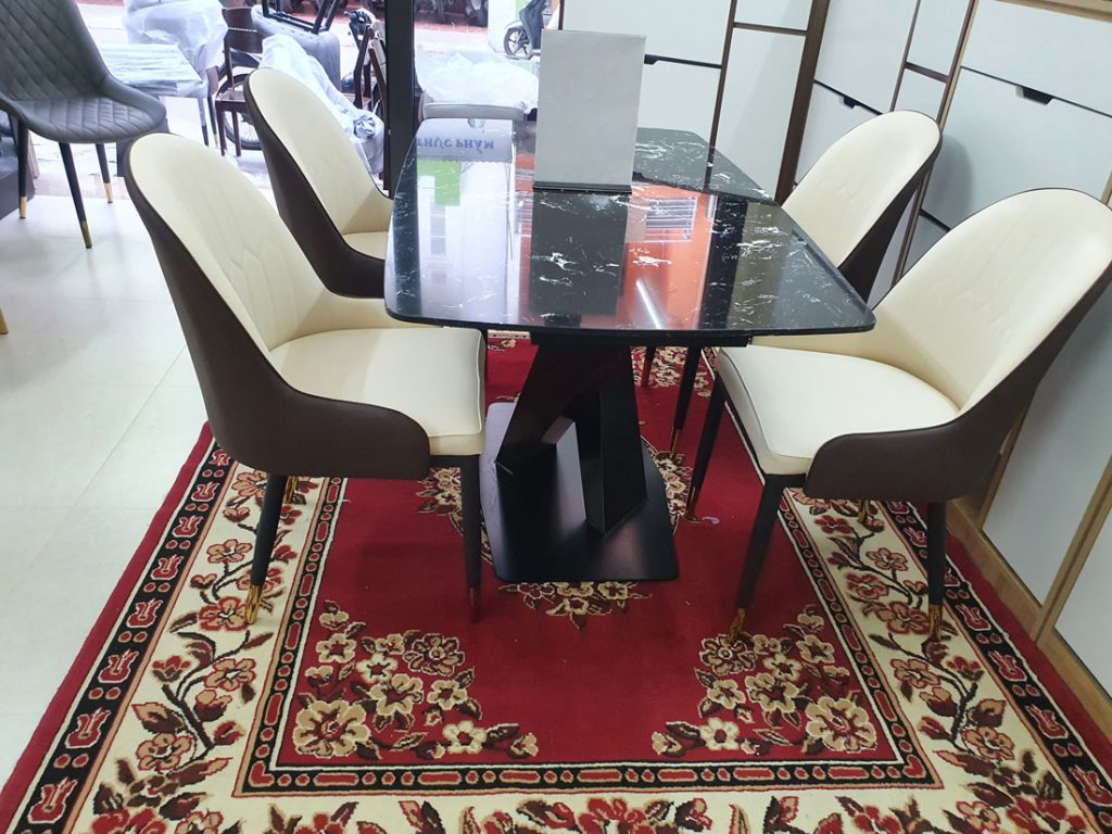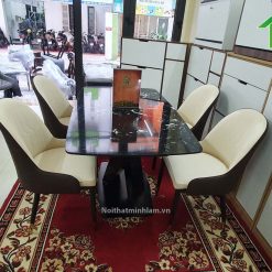- Mặt bàn ăn với đá cảm thạch nhân tạo có khả năng chống ố, chống bám bẩn, lưu giữ vẻ bóng bẩy và bền bỉ theo thời gian ( khác hoàn toàn với hàng phân khúc kém chất lượng ) . Đây là điểm cộng của bàn ăn N3F, tạo dựng niềm tin trong lòng khách hàng.