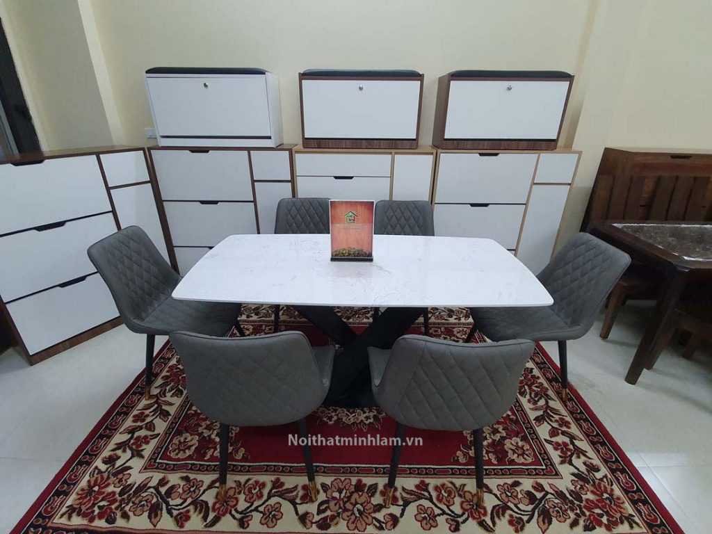 - Mặt bàn ăn với đá cảm thạch nhân tạo có khả năng chống ố, chống bám bẩn, lưu giữ vẻ bóng bẩy và bền bỉ theo thời gian ( khác hoàn toàn với hàng phân khúc kém chất lượng ) . Đây là điểm cộng của bàn ăn N3F, tạo dựng niềm tin trong lòng khách hàng.