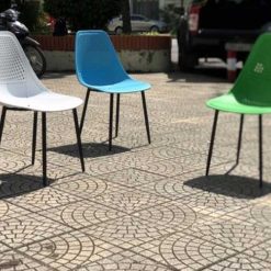 - Cấu tạo: Ghế gồm 4 chân sắt mạ Crom và phần thân ghế là nhựa đổ nguyên khối