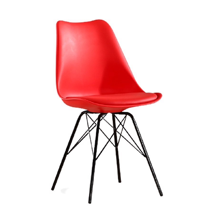 Ghế Eames Mặt Đệm Chân Sắt EA12 là dòng ghế bọc đệm da cao cấp của ghế eames. Ghế đệm mút bọc da chân mạ, mặt simili được làm từ nhựa cao cấp PP và sợi thủy tinh dẻo dai đúc nguyên khối với những đường cong nâng niu cơ thể người dùng. Mặt ngồi hõm sâu, dáng ghế uốn cong tựa như cầu vồng giúp giảm áp lực lên lưng và đùi. Dù ngồi lâu, người sử dụng cũng không bị đau mỏi lưng hay tê chân.