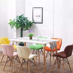Chất Liệu: Bọc vải thổ cẩm cao cấp, Thân ghế được làm từ nhựa cao cấp ABS sợi thủy tinh dẻo dai đúc nguyên khối với những đường cong nâng niu cơ thể người dùng, mặt ngồi hõm sâu,
