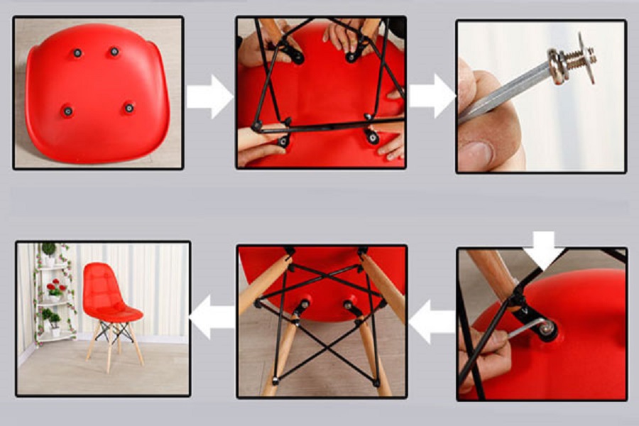 - Bước 1: định vị ốc vít lên thân ghế.