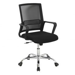 - Chất liệu: tựa lưới, mặt ngồi cốt gỗ, đệm mút, bọc nỉ lưới xốp; tay chân ghế mạ Crom