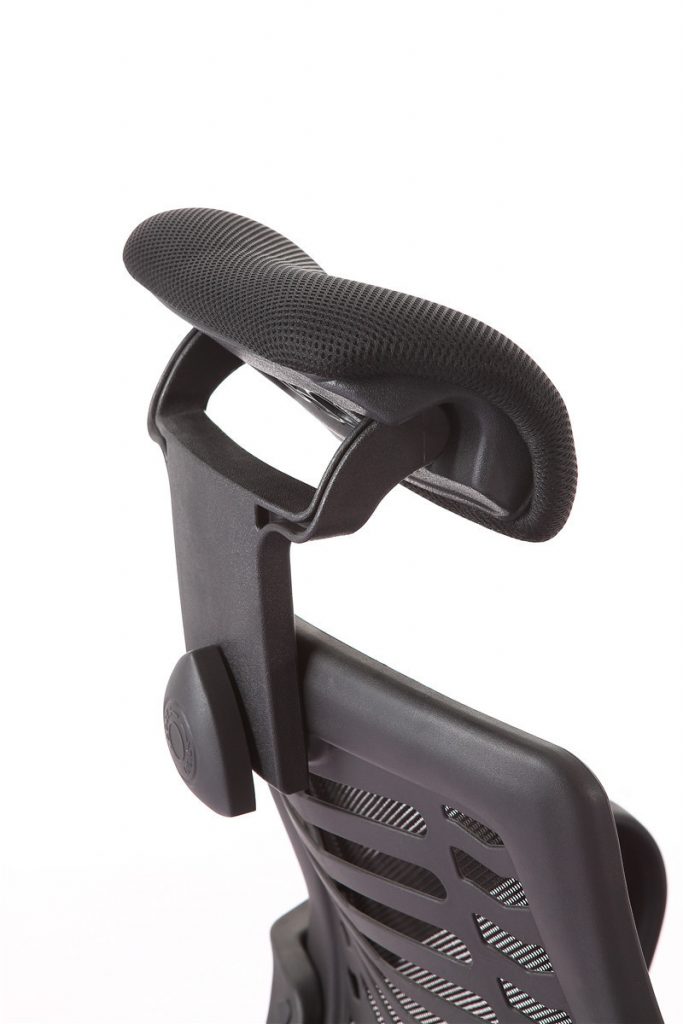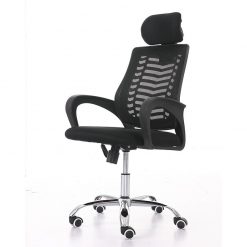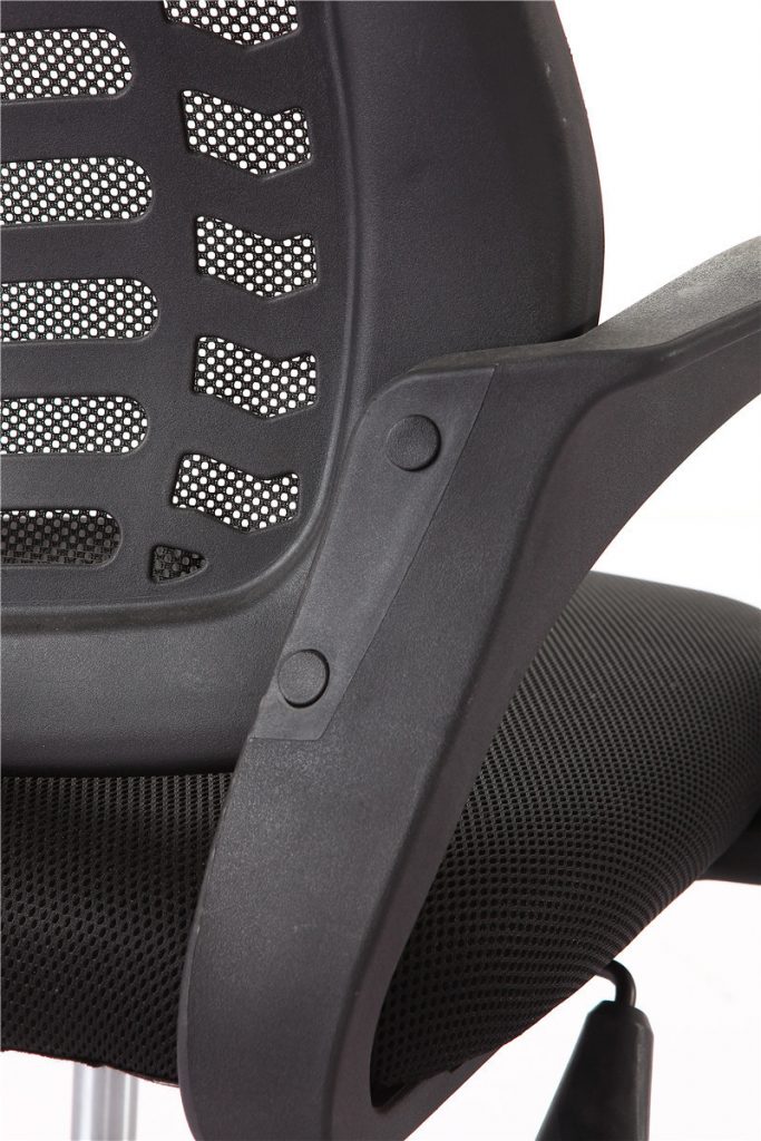 - Chất liệu: tựa lưới, mặt ngồi cốt gỗ, đệm mút, bọc nỉ lưới xốp; tay chân ghế bàng nhựa đen