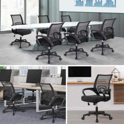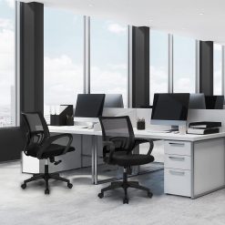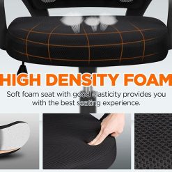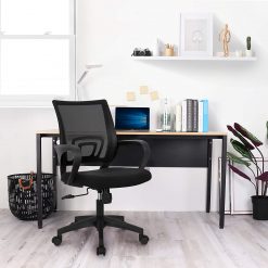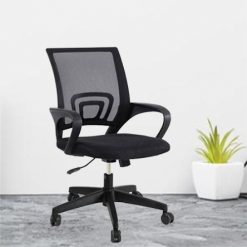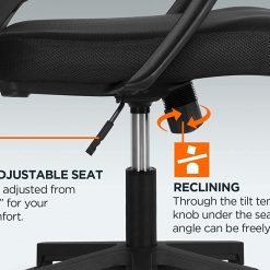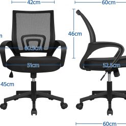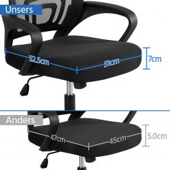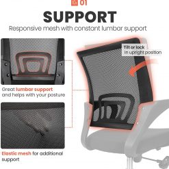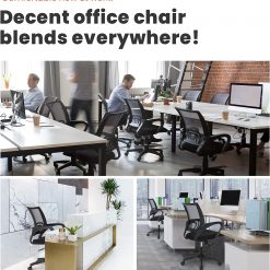 - Chất liệu: tựa lưới, mặt ngồi cốt gỗ, đệm mút, bọc nỉ lưới xốp; tay chân ghế bàng nhựa đen