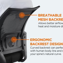 - Lưng ghế: Khung được thiết kế trang trí đỡ phần lưng nhựa màu đen, bọc vải lưới đem lại cảm giác thoải mái cho người dùng.
