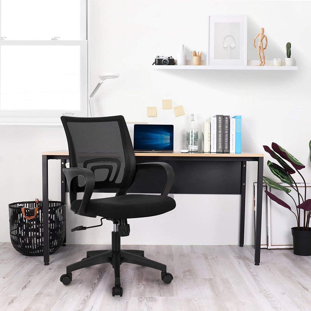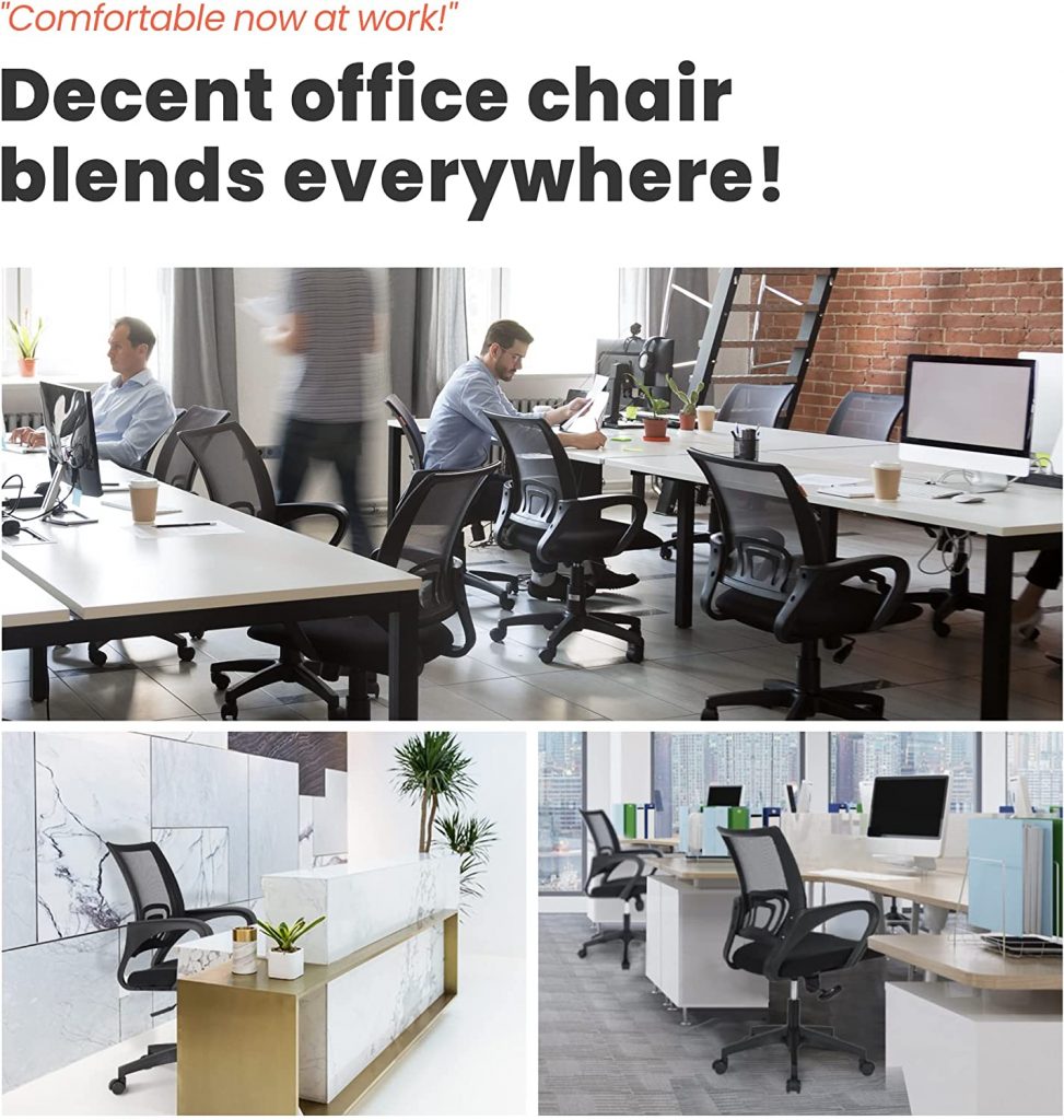 - Chất liệu: tựa lưới, mặt ngồi cốt gỗ, đệm mút, bọc nỉ lưới xốp; tay chân ghế bàng nhựa đen