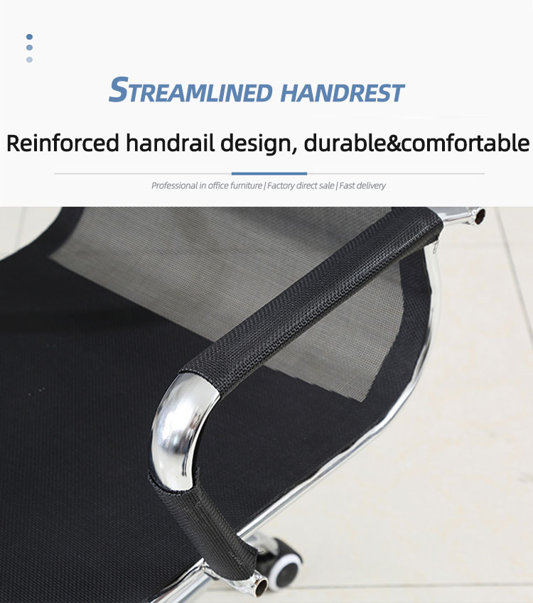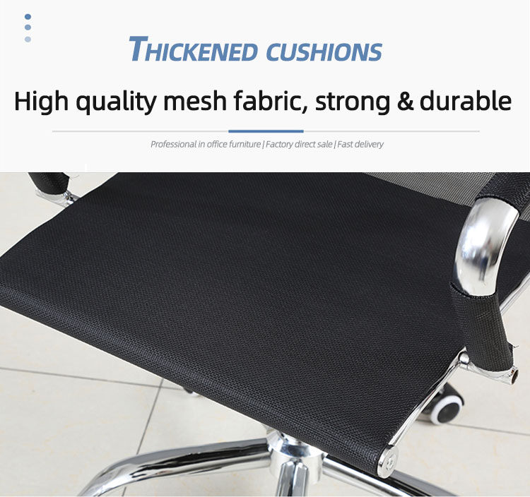 - Chất liệu: tựa lưới, mặt ngồi cốt gỗ, đệm mút, bọc nỉ lưới xốp; tay chân ghế bàng nhựa đen