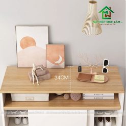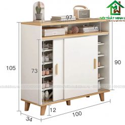 Tủ giày gỗ công nghiệp thiết kế đẹp hiện đại TG300F vừa đáp ứng nhu cầu cất trữ, bảo quản giày dép vừa tạo điểm nhấn cho không gian sử dụng nên được các khách hàng rất yêu thích và lựa chọn. Tủ để giày dép này được sản xuất từ gỗ công nghiệp MDF phủ Melamine chống ẩm, kết cấu chắc chắn, chịu lực tốt. Tủ Giầy được gia công tỉ mỉ, tinh tế và giá cả phải chăng phù hợp với tiêu chuẩn của mọi gia đình Việt.