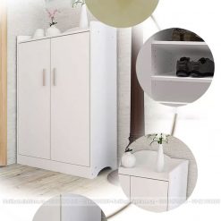 – Cánh mở hai bên, Tủ được chia làm 5 khoang để giầy. Sức chứa gấp đôi tủ giầy thông thường cùng kích thước.