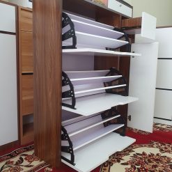 Để khắc phục nhược điểm trên bạn có thể chuyển sang tủ giầy thường, với các đợt chia di động, có thể thao đổi độ cao, phù hợp với mọi loại giầy dép.