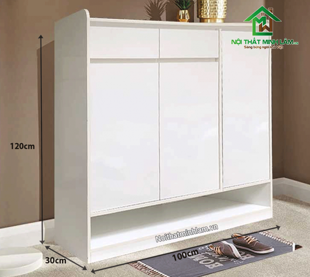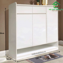 Tủ giầy thường TT100B (Rộng:100cm x Cao:120cm x Sâu:33cm) GIÁ: 1.890.000vnđ. Với các ngăn chia tối ưu, di động có thể thay đồi phù hợp với mọi loại giầy dép là sản phẩm tối ưu nhất sử dụng cho giầy thể thao nam to, giày dép cao, bốt cao cổ…..