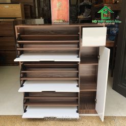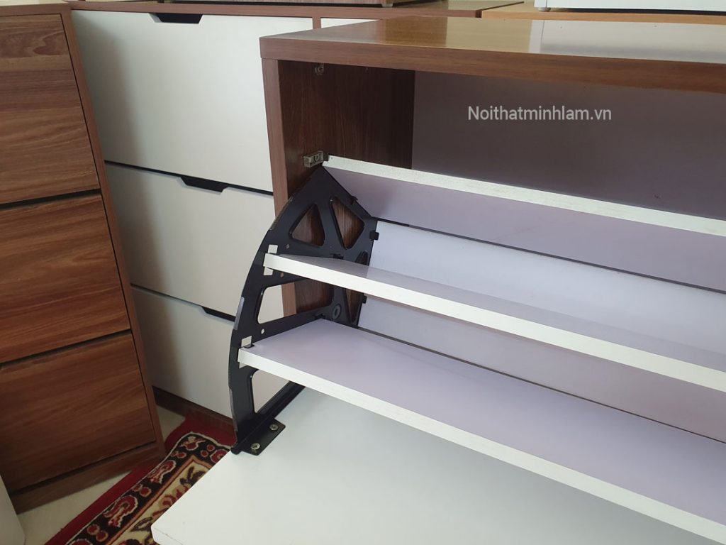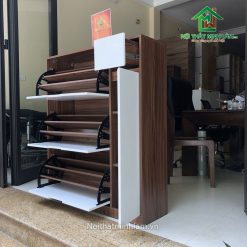 Để khắc phục nhược điểm trên bạn có thể chuyển sang tủ giầy thường, với các đợt chia di động, có thể thao đổi độ cao, phù hợp với mọi loại giầy dép.