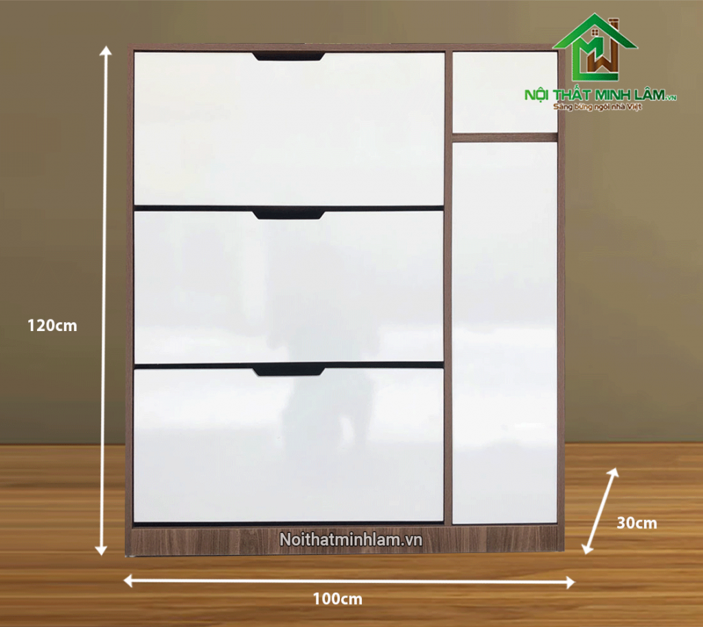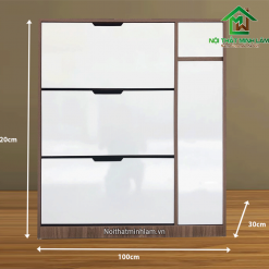Tủ giầy thường TT100A (Rộng:100cm x Cao:120cm x Sâu:33cm) GIÁ: 1.890.000vnđ. Với các ngăn chia tối ưu, di động có thể thay đồi phù hợp với mọi loại giầy dép là sản phẩm tối ưu nhất sử dụng cho giầy thể thao nam to, giày dép cao, bốt cao cổ…..
