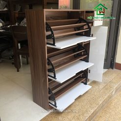 – Cánh mở lật thông minh, mỗi cánh chia làm 3 khoang để giày. Sức chứa gấp đôi tủ giầy thông thường cùng kích thước.