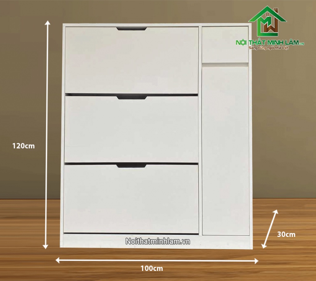 Tủ thông mih thiết kế tối ưu nên các đợt để giầy hơi hẹp, phù hợp phần lớn cho giầy dép nữ nhỏ và giầy dép lê, Đối với giầy dép nam to hoặc giầy thể thao, bốt cao cổ khi sử dụng sẽ tháo ra đợt để tăng kích thước để giầy dép nên sẽ đánh mất sự tối ưu về sức chứa giầy dép.