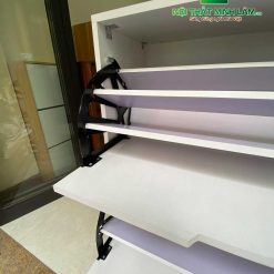 Để khắc phục nhược điểm trên bạn có thể chuyển sang tủ giầy thường, với các đợt chia di động, có thể thao đổi độ cao, phù hợp với mọi loại giầy dép.
