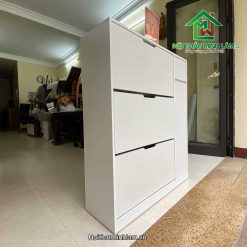 – Cánh mở lật thông minh, mỗi cánh chia làm 3 khoang để giày. Sức chứa gấp đôi tủ giầy thông thường cùng kích thước.