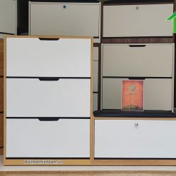 – Cánh mở lật thông minh, mỗi cánh chia làm 3 khoang để giày. Sức chứa gấp đôi tủ giầy thông thường cùng kích thước.