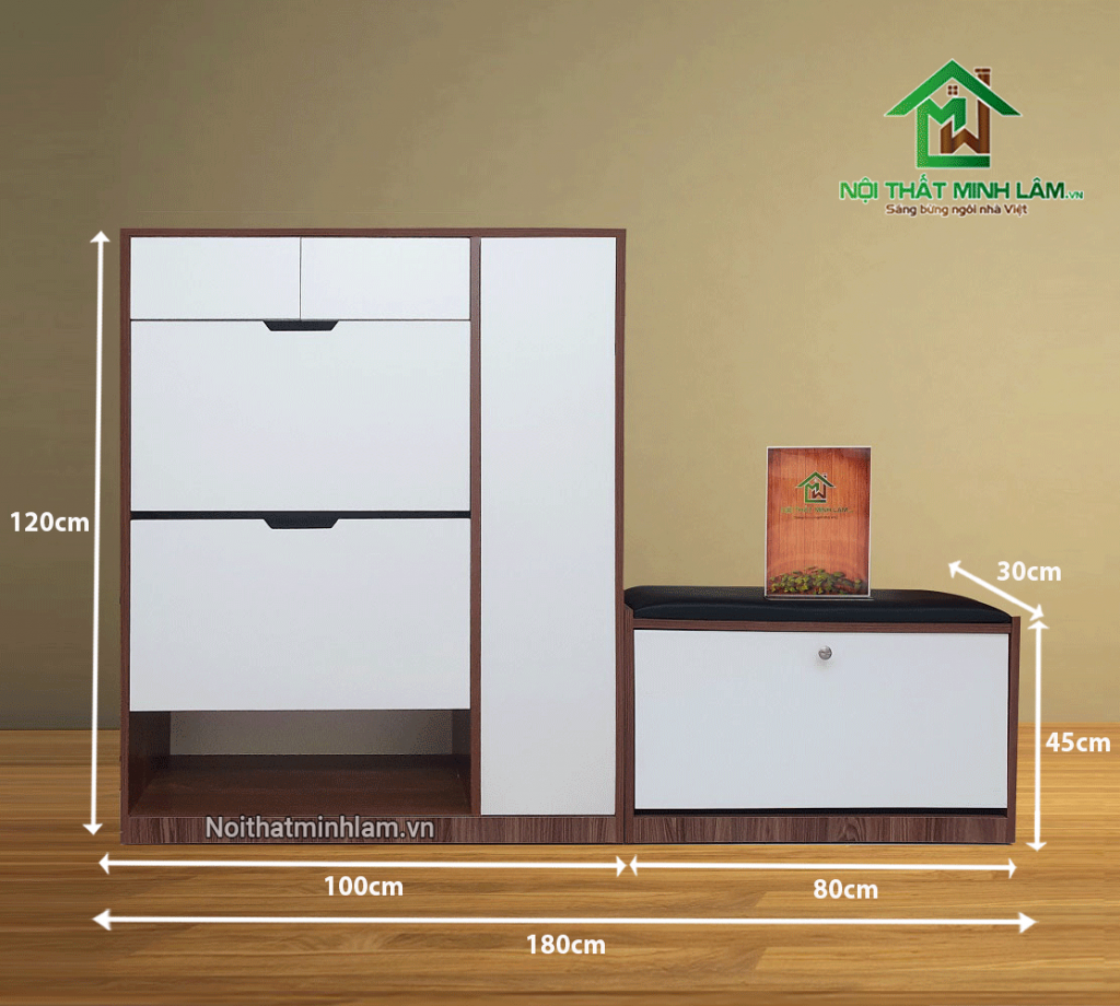 – Sức chứa: 46 – 50 đôi giầy dép, 12 ngăn chứa, 1 ngăn kéo, 1 cánh mở